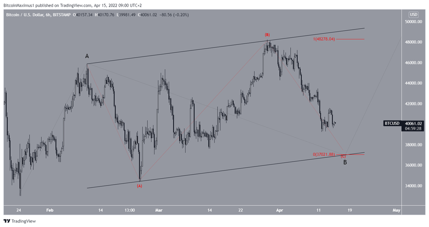 Sin embargo, BTC todavía se está corrigiendo en lo que parece ser una estructura A-B-C (rojo). Entonces, un objetivo potencial para la parte inferior de este movimiento se encuentra cerca de 37,000 dólares. Esto daría a las ondas A y C una proporción de 1:1 y coincidiría con la línea de soporte de un canal paralelo ascendente.