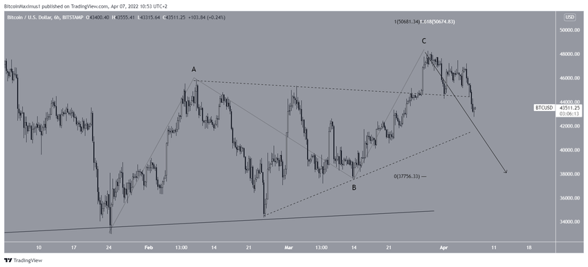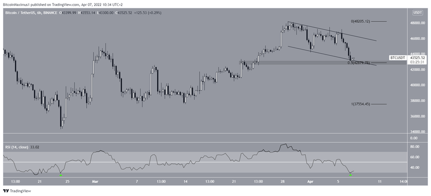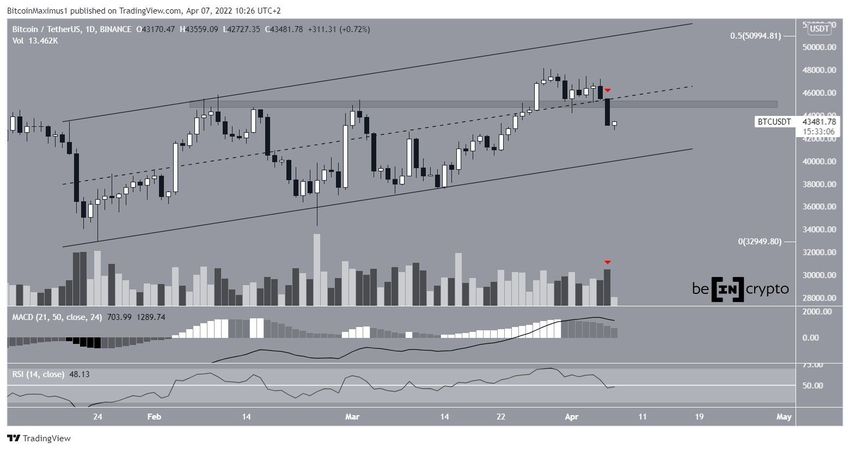 Sin embargo, BTC se rompió en medio de una gran vela bajista el 6 de abril y alcanzó un mínimo de 42,727 al día siguiente.