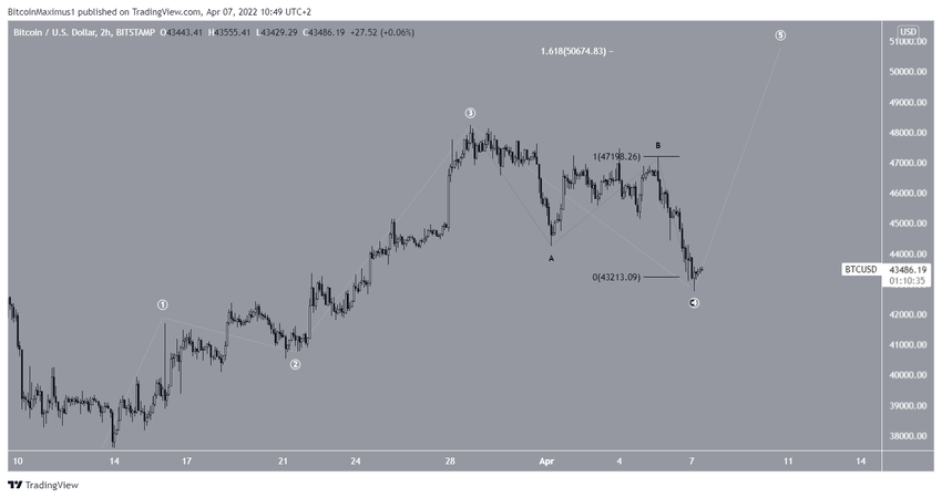 Actualmente, todavía es posible que toda la caída sea una onda cuatro completa, después de lo cual BTC iniciará otro movimiento ascendente hacia 50,700 dólares. La razón de esto es el canal descrito anteriormente y el hecho de que las sub-ondas A y C tienen una proporción de casi 1:1.