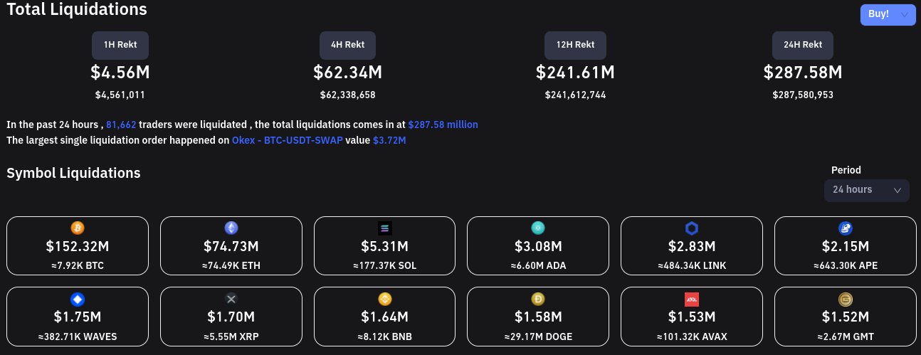Por otra parte, como consecuencia de la caída del precio de las criptomonedas, el mercado cripto ha registrado más de 280 millones de dólares en liquidaciones.
