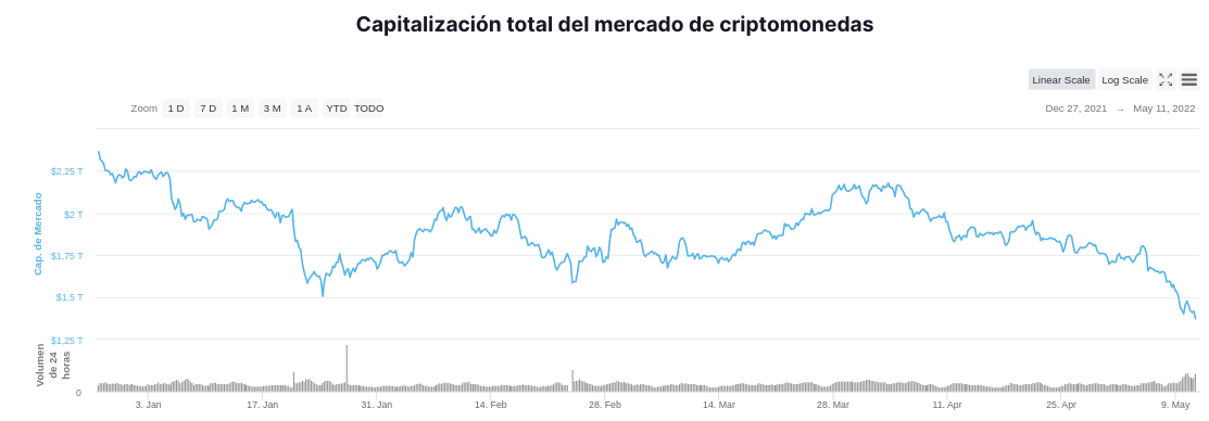 El top 3 de liquidaciones lo completa Terra (LUNA) con una suma de 140,7 millones de dólares. LUNA es el token que más ha sido golpeado en las últimas semanas debido a la crisis del ecosistema Terra.