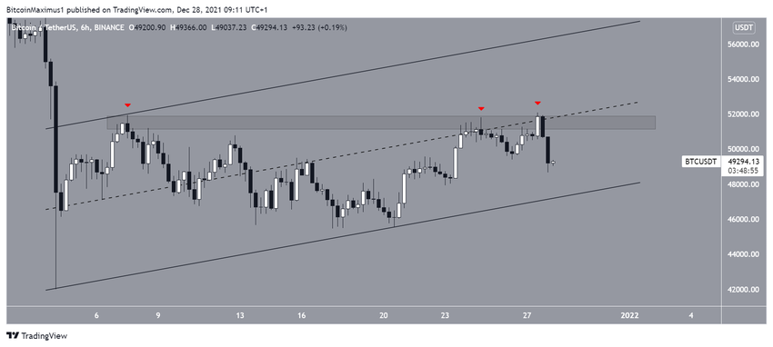 El gráfico de seis horas muestra que BTC ha estado operando dentro de un canal paralelo ascendente desde que alcanzó un mínimo el 4 de diciembre.