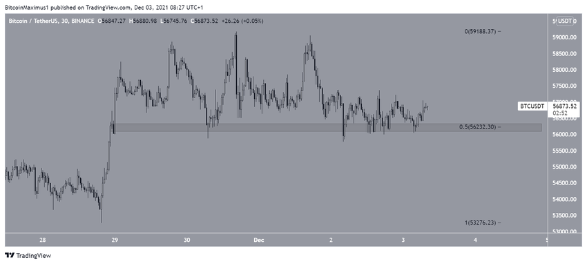 SponsoredEl gráfico de 30 minutos muestra un soporte horizontal y 0.5 ubicado en 56,250 dólares.