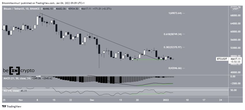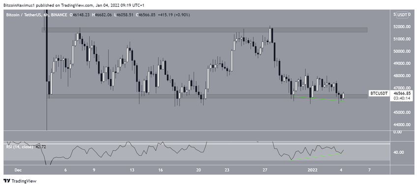 El gráfico de seis horas muestra que, desde principios de diciembre, BTC se ha estado negociando en un rango entre 46,300 dólares y 51,800 dólares. Recientemente fue rechazado por el área de resistencia el 27 de diciembre y desde entonces se ha estado moviendo hacia abajo.