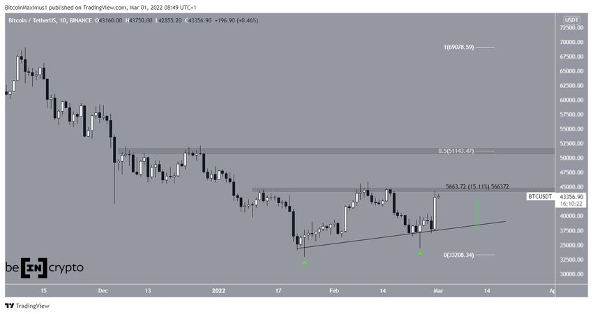 Bitcoin se ha estado moviendo hacia arriba desde el 24 de enero y parece estar siguiendo una línea de soporte ascendente.
