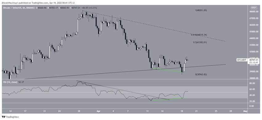 El 18 de abril, Bitcoin alcanzó un mínimo local de 38,536 dólares, pero rebotó y creó una vela envolvente alcista. Este es un patrón de velas en el que toda la caída del día anterior se niega dentro del movimiento del día siguiente. Además de esto, el patrón tenía una mecha inferior larga, lo que se considera un signo de presión de compra.