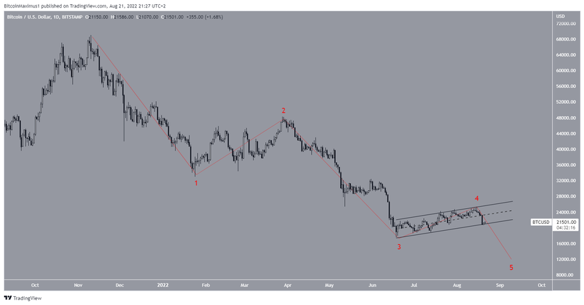 SponsoredDebido a la presencia del canal, el recuento alternativo sugeriría que Bitcoin acaba de completar la onda cuatro y seguirá otra caída final antes de tocar fondo.