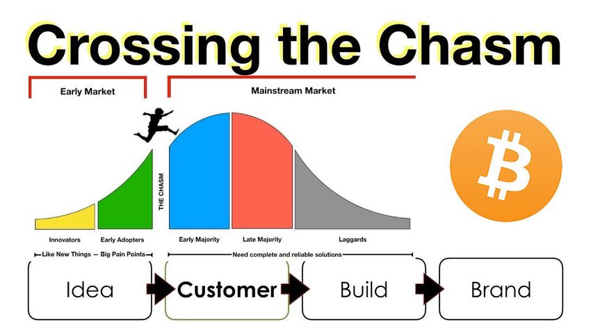 Para tecnologías como Bitcoin, cruzar el abismo implicaría pasar de los entusiastas visionarios de las criptomonedas a una adopción más generalizada por parte de empresas y consumidores. Esto a menudo se considera el desafío clave para la adopción masiva.