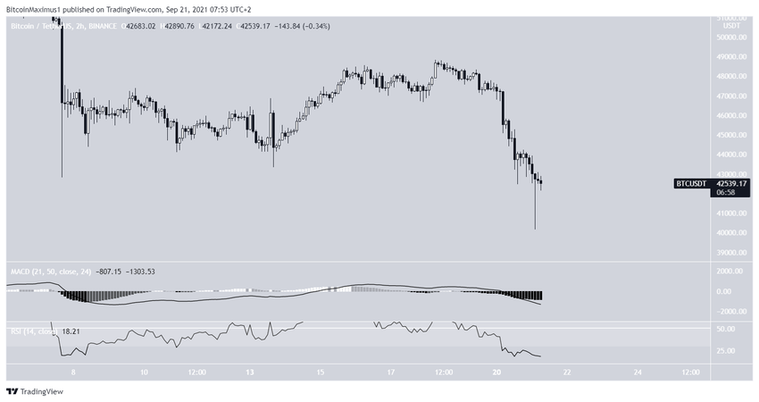 Bitcoin (BTC) cayó considerablemente el 20 de septiembre, desplomándose del área de soporte de 44,000 dólares en el proceso.