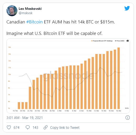 Como bromea Moskovski, “Imagínese de lo que será capaz un ETF de Bitcoin de EE. UU.”