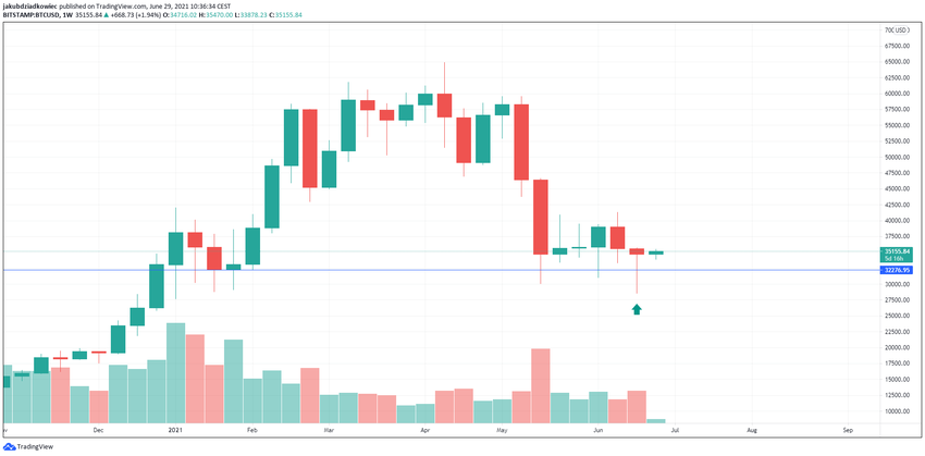 La semana pasada, el precio de Bitcoin tocó fondo en 28,600 dólares, un área que no se ha visto desde enero de 2021. Sin embargo, poco después se produjo un fuerte rebote y una nueva prueba del nivel de 35,000 dólares.
