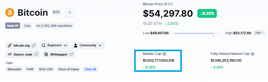 SponsoredGracias a los datos de CoinMarketCap, se observa que, al momento de la publicación, la capitalización de mercado de Bitcoin asciende a 1,02 billones de dólares.