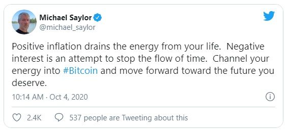 Bitcoin, por otro lado, tiene un suministro fijo: no importa cuán alto sea su precio, no hay forma de crear más BTC que 21 millones. Esto, en su opinión, hace que Bitcoin sea “un activo más fuerte que el oro”. Según él, esto fue lo que lo motivó a convertir el 75% de las reservas de su empresa en lo que antes había denominado “un cubo de hielo derretido de 500 millones de dólares”.
