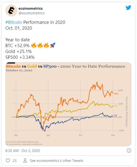 Mientras tanto, Saylor de MicroStrategy reveló que la decisión de convertirse en una ballena de BTC fue bien recibida dentro de la empresa, ya que sus empleados ven a Bitcoin como la vanguardia de una nueva ola digital. Probablemente no duele que Bitcoin haya superado a la mayoría de los otros activos en lo que va de año, incluido el oro y el S&P 500.