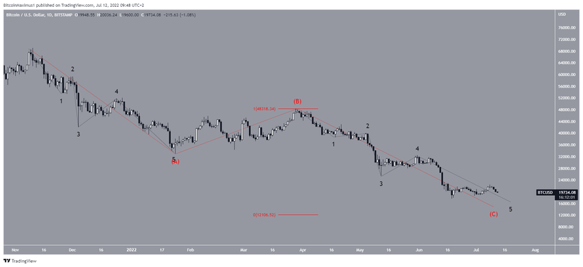 Dar a las ondas A y C una proporción de 1:1 llevaría a un mínimo de 12,100 dólares. Por lo tanto, el potencial de un movimiento a la baja continuo sigue siendo inmenso.