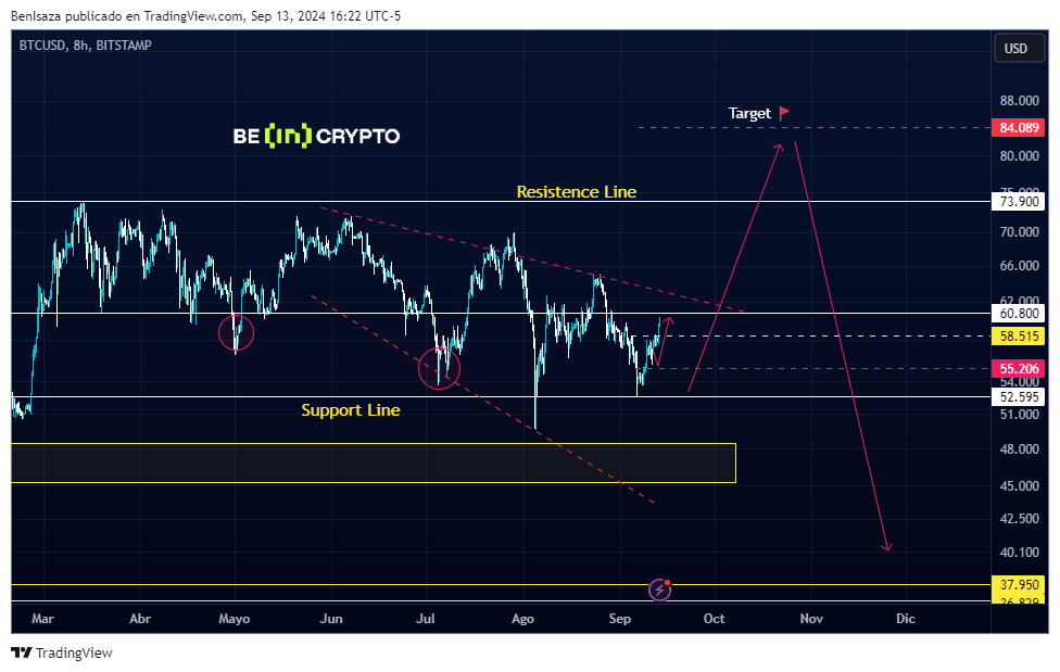 El precio de BTC ahora pondrá a prueba la barrera de los 62,000 dólares, una zona clave que de ser recuperada supone un cambio de tendencia a corto plazo. Esto podría llevar el precio a nuevos máximos históricos entre el mes de septiembre y noviembre de 2024.