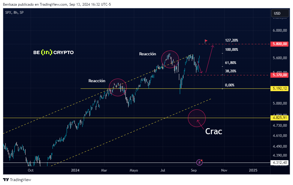 El mercado podría reaccionar al alza, con una continuidad alcista que llevaría al S&P500 a zona de máximos históricos que, en base a la proyección de Fibonacci, podría ir a buscar la zona de los 5800 ~ 6000 puntos, representado el 127.2 y 161.8 de Fibonacci.