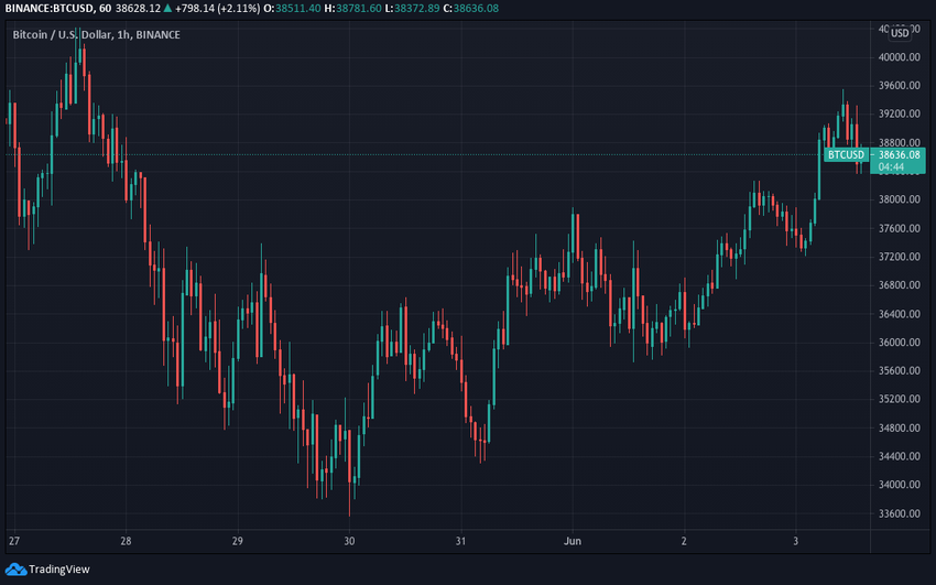 Ese día subió a más de 36,000 dólares, antes de volver a caer. Desde el 31 de mayo, alcanzó los 37,000 dólares, luego bajó a 36,000 dólares, el 1 de junio, y hasta 38,000 dólares, el 2 de junio. Para el 3 de junio, se situó por encima de los 39,000, dólares donde actualmente cotiza.