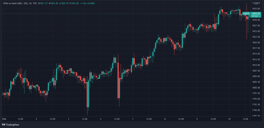 Subió a 1,827 dólares el 9 de febrero y actualmente cotiza justo por encima de 1,830 dólares.