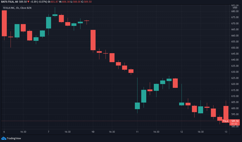 Tesla ha tenido una semana difícil en general. Aunque sus acciones cayeron en la primera hora de negociación, el 6 de mayo retrocedieron más de 680 dólares el día siguiente. Sin embargo, cayó aún más. El 10 de mayo registró una caída hasta los 630 dólares.