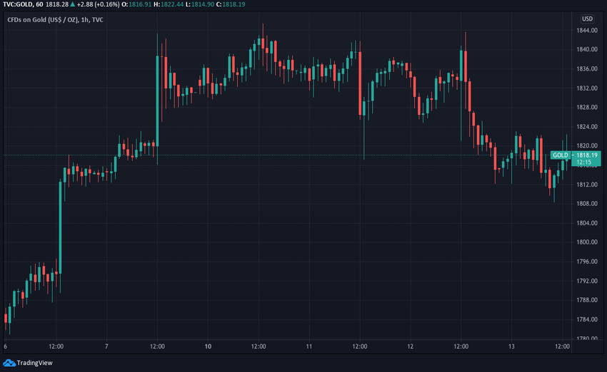 Al día siguiente tuvo un movimiento oscilante, antes de alcanzar los 1,820 dólares, a finales del 12 de mayo, donde se cotiza actualmente.