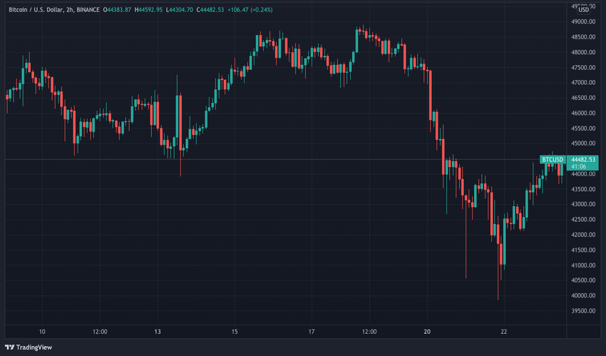 SponsoredAunque BTC rebotó a 47,000 dólares el 18 de septiembre, no fue Hasta el 20 de septiembre, que realmente se desplomó. Para el 21 de septiembre, BTC había alcanzado tan solo 40,000 dólares, pero desde entonces se ha recuperado un poco y se cotiza apenas por encima de los 44,000 dólares.