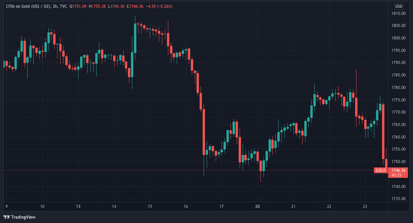 Sin embargo, el 15 de septiembre comenzó a filtrarse, cayendo a 1,745 dólares el 16 de septiembre. Subiendo a 1,765 dólares el 17 y 20 de septiembre, logró llegar a 1,780 dólares el 21 de septiembre, pero desde entonces ha vuelto a caer a 1,745 dólares.