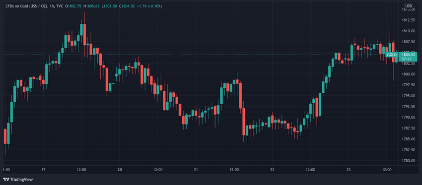 A pesar de un aumento a casi 1,800 dólares, el oro cayó aún más por debajo de 1,790 dólares. Pero al mediodía del 22 de diciembre, el oro estaba nuevamente en alza y actualmente cotiza alrededor de 1.805 dólares.