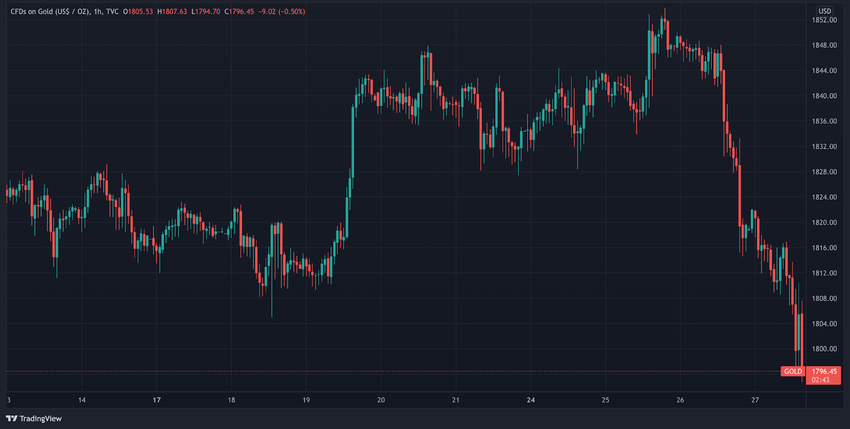 Sin embargo, al día siguiente, el precio del oro se desplomó y ahora cotiza en torno a los 1,796 dólares.