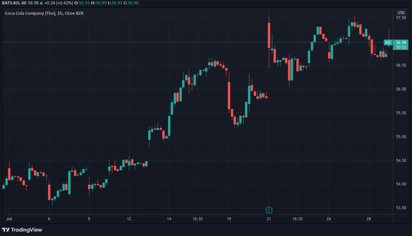Coca-Cola también publicó un informe financiero recientemente, lo que provocó un aumento en el volumen fuera de horario que provocó el aumento de la brecha y la oscilación salvaje de los precios el 21 de julio.