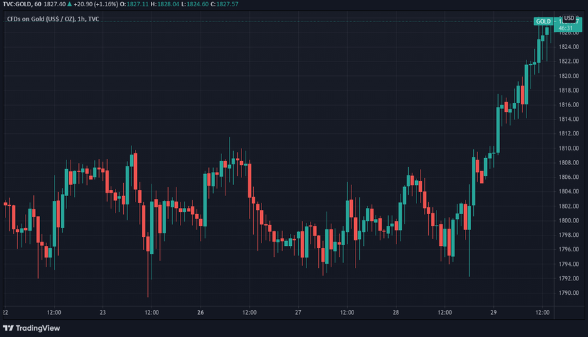 Sin embargo, después de alcanzar el umbral más bajo el 28 de julio, el oro alcanzó su punto de resistencia reciente. Desde allí continuó despegando hasta el día siguiente. Actualmente cotiza en aproximadamente 1,830 dólares.
