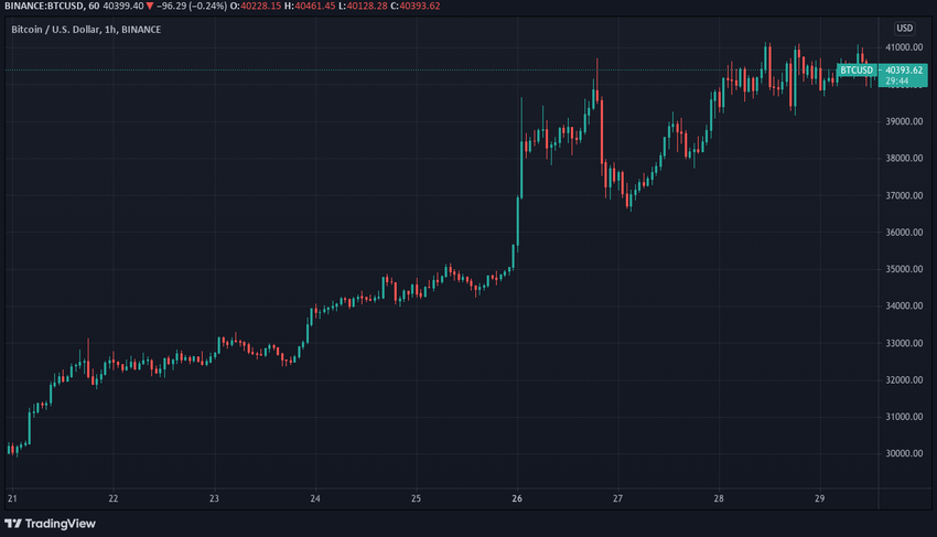 SponsoredLuego, al 26 de julio, Bitcoin se disparó más allá de los 39,000 dólares. Más tarde en el día, esto superó los 40,000 dólares, pero cayó abruptamente de nuevo a 37,000 dólares el 27 de julio. Sin embargo, el impulso de compra regresó y empujó el precio de nuevo a 40,000 dólares donde se cotiza actualmente.