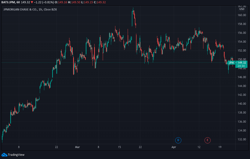 El 18 de marzo vio la brecha del precio de las acciones hasta su máximo histórico de 161 dólares, antes de volver a caer a 150 dólares, donde se ha estado canalizando nuevamente desde entonces. JPM cotiza actualmente por debajo de los 150 dólares.
