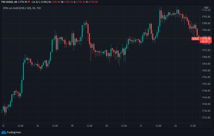 Esto culminó con un aumento de hasta 1,797 dólares, antes de volver a bajar hasta aproximadamente 1,780, donde se negociaba en el momento de escribir este artículo.