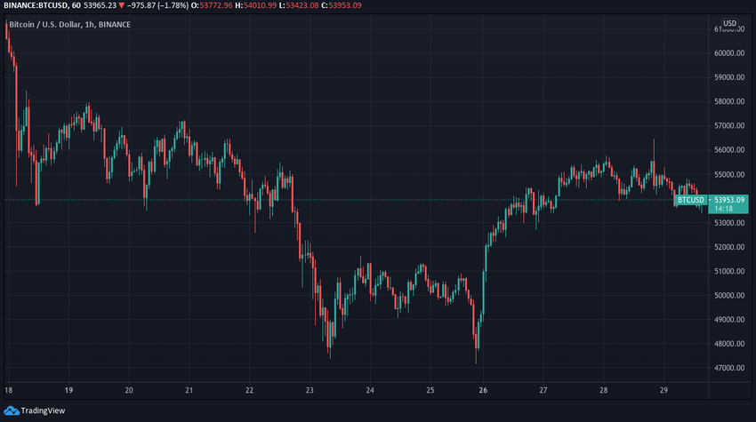 SponsoredSin embargo, a partir de ese momento, hasta el 26 de abril, la presión de compra lo regresó hasta los 54,000 dólares. Bitcoin cotizó por encima de los 55,000 dólares los dos días siguientes, pero desde entonces ha caído hasta aproximadamente 54,000 dólares, donde se cotiza actualmente.