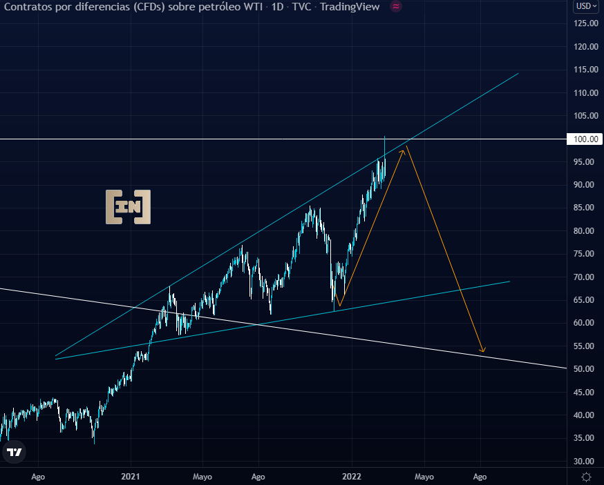 La cotización del crudo ha alcanzo los 100 dólares por barril. En el petróleo también se ha alcanzado la proyección de nuestra lectura al alcanzar los 100 dólares durante el primer trimestre del año.
