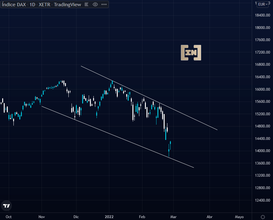 El índice del DAX es el segundo mas golpeado tras el crash del mercado del 24 de febrero, la bolsa de Alemania cerro con una caída del 3.96% un nuevo mínimo los últimos seis meses.