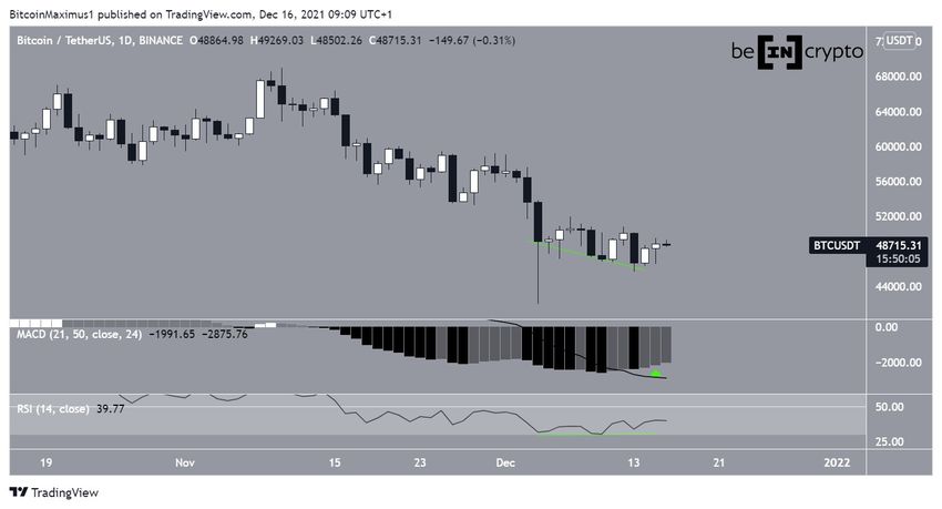 El gráfico diario muestra que Bitcoin aumentó ligeramente el 15 de diciembre, aunque aún tiene que recuperar los máximos del 13 de diciembre.