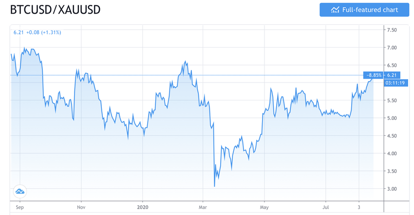 SponsoredSacar USD de la ecuación: 1 BTC = 6 onzas de oro .. y subiendo