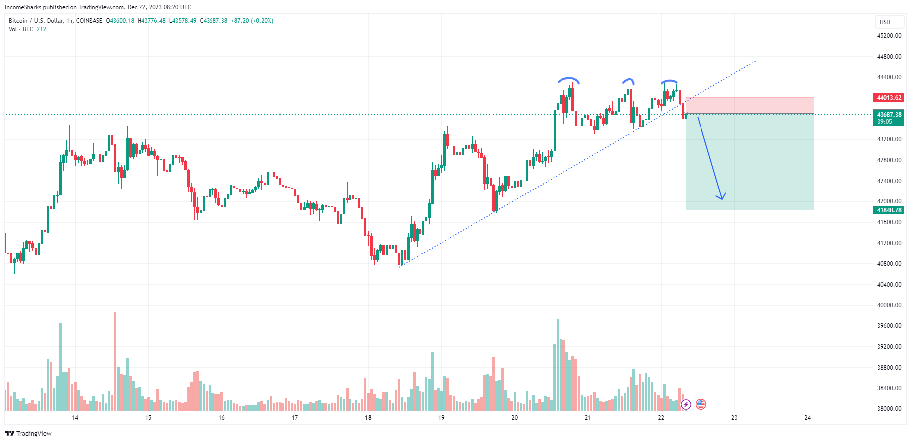 El precio del Bitcoin (BTC) ha caído ligeramente desde que alcanzó un nuevo máximo anual de 44,730 dólares el 8 de diciembre.