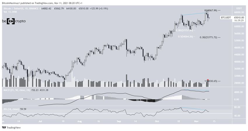 Bitcoin alcanzó un nuevo máximo histórico de 69,000 dólares el 10 de noviembre. Sin embargo, cayó casi inmediatamente después, alcanzando un mínimo de 65,982 dólares el mismo día.