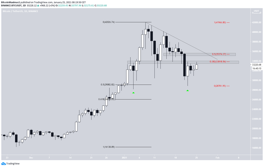 Durante la semana del 18 al 25 de enero, el precio de Bitcoin (BTC) reanudó el descenso que comenzó con un precio máximo histórico de 42.000 dólares el 8 de enero.