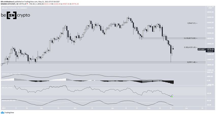 BTC subió el 20 de mayo después de encontrar soporte el día anterior. Sin embargo, fue rechazado por la resistencia de 0.382 Fib en $41,200. Este es sólo un nivel de resistencia menor. La resistencia más crítica que debe superar BTC es la de $48,170.
