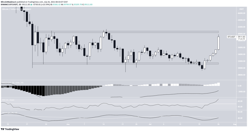 Bitcoin (BTC) comenzó la semana del 19 al 25 de Julio con un movimiento a la baja que llevó a un mínimo de 29,278 dólares el 20 de Julio. Sin embargo, el precio ha estado aumentando desde entonces, recuperando el área de soporte horizontal de 31,300 dólares.