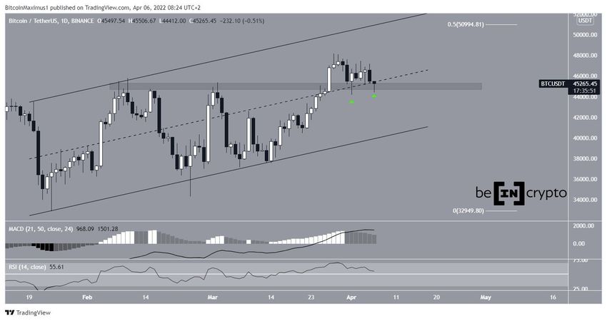 Bitcoin se ha estado moviendo hacia arriba desde el 24 de enero. Es posible que el aumento esté contenido dentro de un canal paralelo ascendente. BTC rebotó en la línea de soporte el 14 de marzo y comenzó a acelerarse.