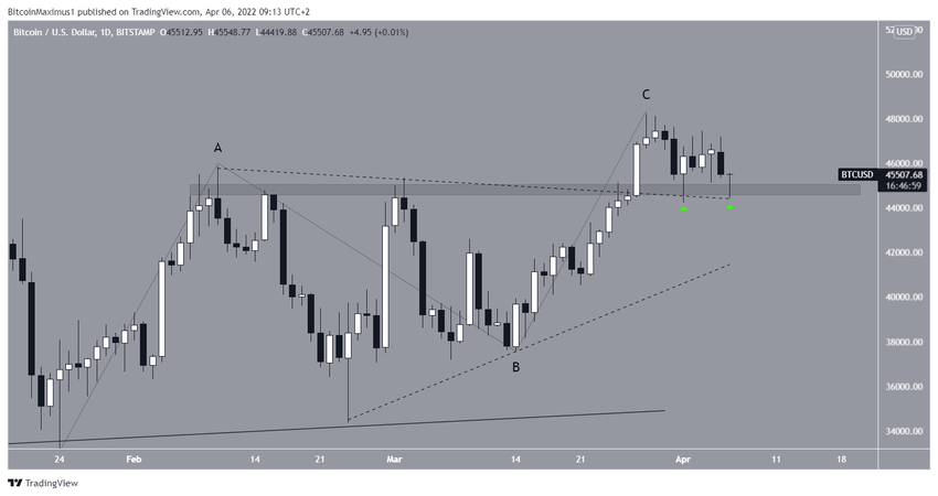 Sin embargo, BTC rebotó en el área de soporte menor de 44,550 dólares y creó una mecha inferior muy larga. Esta fue la segunda vez que esta área ofreció apoyo (iconos verdes).