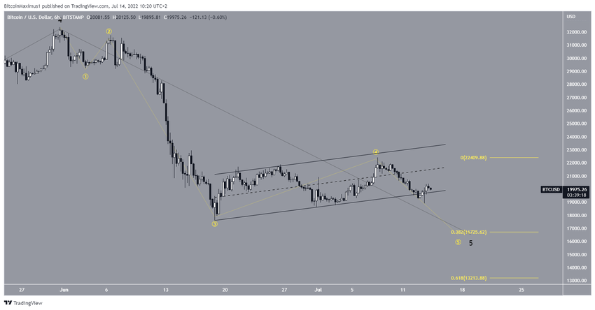 El recuento de ondas también respalda la posibilidad de que el precio experimente una ruptura y cree un nuevo mínimo. La razón de esto es que parece que BTC está en la onda cinco de un movimiento descendente de cinco ondas (amarillo).