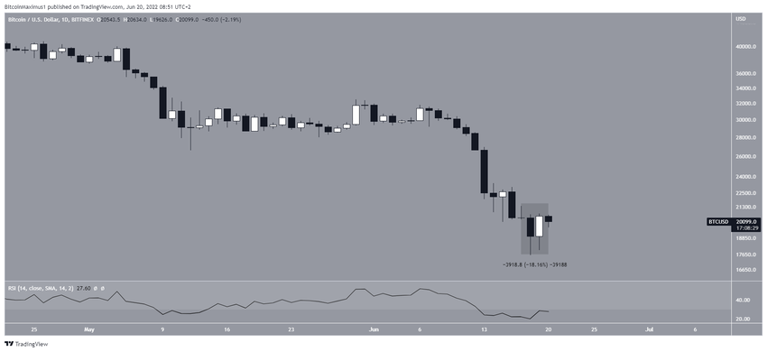 BTC ha estado cayendo desde que alcanzó un máximo histórico de 68,958 dólares en noviembre. El movimiento a la baja hasta ahora llevó a un mínimo de 17,605 dólares el 18 de junio.