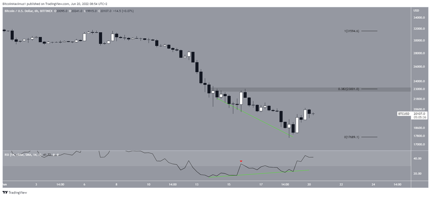 En segundo lugarr, del 18 al 19 de junio, BTC creó una vela envolvente alcista que tenía una mecha inferior larga. Cuando se combina con el RSI sobrevendido, es una señal de un fondo potencial.