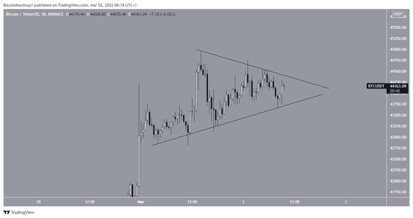 Después de superar una línea de resistencia descendente a corto plazo, Bitcoin (BTC) intenta moverse por encima del área de resistencia horizontal de 44,100 dólares.